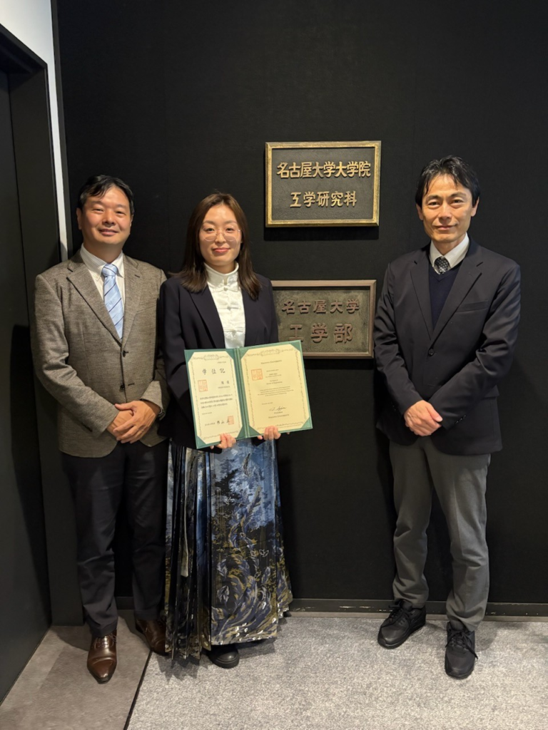 Ms. Chen Qiao, a D3 student, has been awarded the degree of Doctor of Engineering. Congratulations! She will continue her research and teaching as a Designated assistant professor.